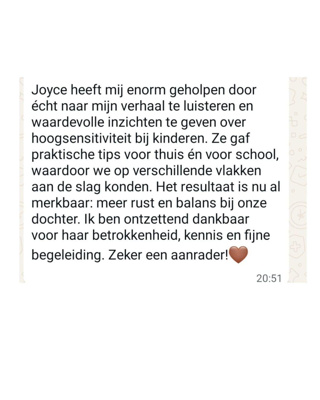 Ik ben er dus zowel voor de gevoelige kinderen EN hun ouders, ieder traject stemmen we samen persoonlijk af. Er bestaat geen one size fits all in mijn werkwijze.